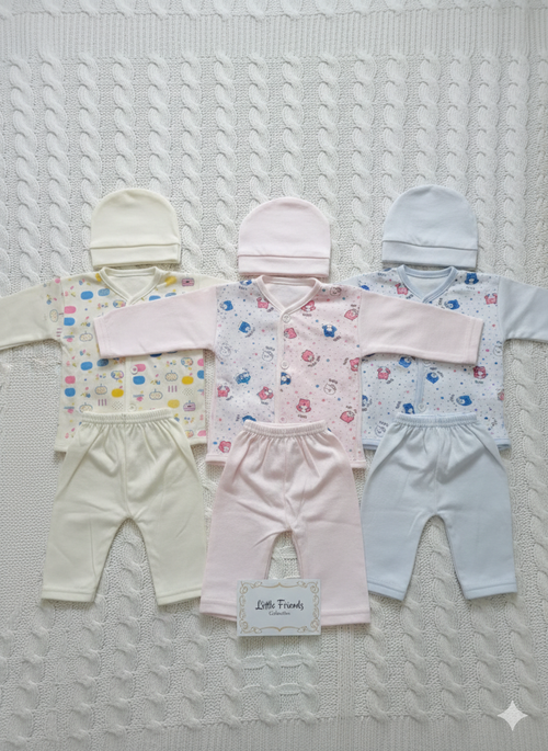 Our new sets are curated for every need: featuring cozy knits, graphic tees with shorts, complete dresses, and practical cargo bottoms.